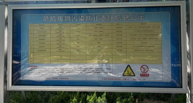 我濰坊碩邑化學(xué)有限公司現(xiàn)有危險(xiǎn)廢物八種,分別為廢活性炭(HW49  900-039-49)、乳化劑等助劑包裝物(HW49  900-041-49)、油漆桶(HW49  900-041-49)、廢試劑瓶(HW49  900-041-49)、化驗(yàn)室廢液(HW49  900-047-49)、廢機(jī)油桶(HW08  900-249-08)、廢機(jī)油(HW08  900-214-08)、廢過(guò)濾吸附物(HW49  900-041-49)。